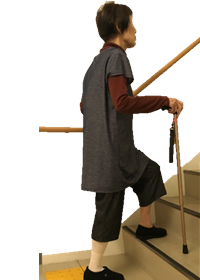 杖歩行が安定してくれば、階段昇降の練習を行います。